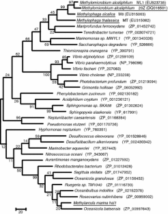 Doronina NV, TsD Darmaeva, Trotsenko YA (2003a) Methylophaga alcalica sp. nov., a novel alkaliphilic and moderately halophilic, obligately methylotrophic bacterium from the East Mongolian saline soda lake. Int J Syst Evol Microbiol 53:223–229