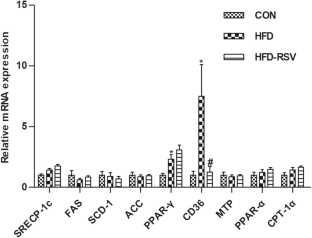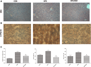 Andrade JM, Paraíso AF, de Oliveira MV, Martins AM, Neto JF, Guimarães AL, de Paula AM, Qureshi M, Santos SH (2014) Resveratrol attenuates hepatic steatosis in high-fat fed mice by decreasing lipogenesis and inflammation. Nutrition 30:915–919