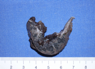 We describe a 64-year-old female patient with a cystic tumor mass of the mandible leading to pathologic bone fracture. X-ray analysis was suggestive for aneurysmatic bone cyst. A segment resection was performed.