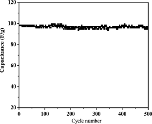 High specific capacitance and low cost are the critical requirements for a practical supercapacitor. In this paper, a new activated carbon with high specific capacitance and low cost was prepared, employing cotton stalk as the raw material, by using the phosphoric acid (H3PO4) chemical activation method. The optimized conditions were as follows: the cotton stalk and activating agent with a mass ratio of 1:4 at an activation temperature of 800 °C for 2 h. The samples were characterized by nitrogen adsorption isotherms at 77 K. The specific surface area and pore volume of activated carbon were calculated by Brunauer–Emmett–Teller (BET) and t-plot methods. With these experimental conditions, an activated carbon with a BET surface area of 1,481 cm2 g−1 and micropore volume of 0.0377 cm3 g−1 was obtained. The capacitance of the prepared activated carbon was as high as 114 F g−1.The results indicate that cotton stalk can produce activated carbon electrode materials with low cost and high performance for electric double-layer capacitor.