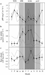 González N, Anadón R, Viesca L. 2003. Carbon flux through the microbial community in a temperate sea during summer: role of bacterial metabolism. Aquat Microb Ecol 33:117–26.