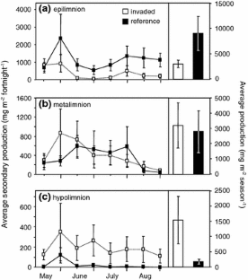 Dumitru C, Sprules WG, Yan ND. 2001. Impact of Bythotrephes longimanus on zooplankton assemblages of Harp Lake, Canada: an assessment based on predator consumption and prey production. Freshw Biol 46: 241–51