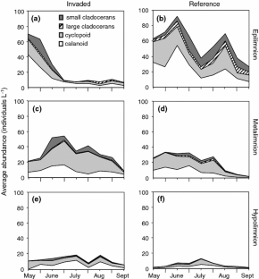 Strecker AL, Arnott SE. 2005. Impact of Bythotrephes invasion on zooplankton communities in acid-damaged and recovered lakes on the Boreal Shield. Can J Fish Aquat Sci 62: 2450–62