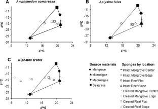 We thank C. Diaz, B. Fry, B. Griffis, R. Brooks, S. Silva, R. Doucett, C. Kendall, S. Perez, V. Weis, and B. Hungate for their ideas, suggestions, interpretations, and assistance with the sample processing. We also thank K. Purcell, K. Frasier, N. Ehlers, A. Amat, and M. Brown for their assistance in the lab and field. This manuscript was significantly improved through discussions and input from V. Weis, B. Menge, J. Lubchenco, J. Benstead, and two anonymous reviewers. Funding for this study was provided by a Fulbright Fellowship, an NSF-GRF, an Oregon State University Aquaculture Collaborative Research Support Program Fellowship, The David and Lucile Packard Foundation, a Smithsonian Tropical Research Institution—Supplemental Research Award, an Anchor Environmental Scholarship, OSU URISC and IURP Fellowships, a Department of Zoology Research Fellowship from Oregon State University, and in-kind support from the USGS Menlo Park Laboratory and the US EPA National Health and Environmental Effects Laboratory, Western Ecology Division. This manuscript has been subjected to US EPA’s peer and administrative review, and it has been approved for publication as an EPA document. Mention of trade names or commercial products does not constitute endorsement or recommendation for use.