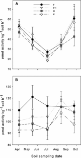 Saiya-Cork KR, Sinsabaugh RL, Zak DR. 2002. The effects of long term nitrogen deposition on extracellular enzyme activity in an Acer saccharum forest soil. Soil Biol Biochem 34:1309–15.