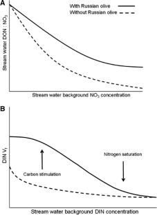 Mineau MM. 2010. The effects of Russian olive (Elaeagnus angustifolia) invasion on stream nitrogen cycling, organic matter dynamics, and food webs. Doctoral dissertation, Idaho State University.