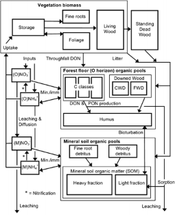 Currie WS, Nadelhoffer KJ, Aber JD. 2004. Redistributions of 15N highlight turnover and replenishment of mineral soil organic N as a long-term control on forest C balance. For Ecol Manag 196:109–27.