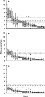 Pastor J, Aber JD, McClaugherty CA, Melillo JM. 1984. Aboveground production and N and P cycling along a nitrogen mineralization gradient on Blackhawk Island, Wisconsin. Ecology 65:256–68.