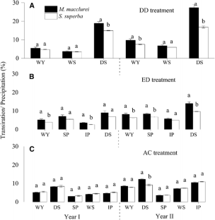 This study was financially supported by the National Natural Science Foundation of China (Grant No. 41630752, 31130011, 41030638, 31290222) and the CAS/SAFEA International Partnership Program for Creative Research Teams. Sincere thanks to the staff in Heshan National Field Research Station of Forest Ecosystem, Chinese Academy of Sciences. We particularly thank Dr. Jianguo Gao who managed the sap flow measurement and Mr. Zhipeng Chen who helped with instruments maintenance. Two anonymous reviewers and the subject-matter editor provided constructive suggestions that improved the manuscript.
