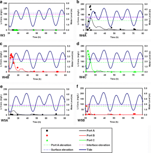 尽管采取了很大的补救措施, 但1989年埃克森瓦尔迪兹石油公司漏油事件中的油仍然存在于 (美国阿拉斯加州) 威廉王子海峡的许多砾石海滩中. 2008年夏天在威廉王子海峡骑士岛的砾石海滩利用锂进行了示踪研究. 采用二维数值模型MARUN模拟了示踪剂沿横断面的注入和传输过程. 模型成功地再现了沿横断面观测井观测到的示踪剂含量. 灵敏度分析显示, 估算的参数很好地得到确定. 示踪剂模拟的空间分布表明, 沿横断面应用的用于生物修复目的的营养素凭借两层的海滩结构—潮汐波动和来自内陆的淡水流会很快 (在半日的潮汐周期内) 被冲到大海. 因此, 发现横断面的孔隙水样由于影响因素而非生物修复显得很干净. 这可解释为什么油没有存留在横断面内.