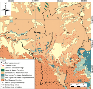 Ribeiro JH, Tuller MP, Danderfer Filho A (2003) Mapeamento geológico da região de Sete lagoas, Pedro Leopoldo, Matozinhos, Lagoa Santa, Vespasiano, Capim Branco, Prudente de Morais, Confins e Funilândia, Minas Gerais (escala 1:50.000) [Geological mapping of the region of Sete Lagoas, Pedro Leopoldo, Matozinhos, Lagoa Santa, Vespasiano, Capim Branco, Prudente de Morais, Confins and Funilândia, Minas Gerais State, Brazil (scale 1:50,000), 2nd edn]. CPRM, Belo Horizonte, Brazil, 54 pp