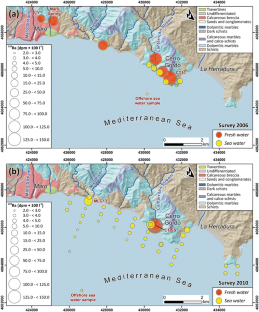 Garcia-Solsona E, Garcia-Orellana J, Masque P, Rodellas V, Mejias M, Ballesteros B, Dominguez JA (2010b) Groundwater and nutrient discharge through karstic coastal springs (Castelló, Spain). Biogeosciences 7:2625–2638.8