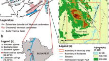 The basement of the study area is built up by fractured and weathered Palaeozoic low- and medium-grade metamorphics (gneiss, mica schists), siliciclastic terrestrial sediments and granite, which can be found mainly in the western and northern part of the study area (Szederkényi 2001; Haas et al. 2010; Szederkényi et al. 2013; Fig. 2). Some of these formations are subaerially exposed in the Mecsek Mountains. Intensely karstified Mesozoic carbonates mainly form the eastern and southeastern basement part (Török 1998; Császár 2002). These deposits were thrusted upon each other forming the NE-vergent imbricated thrust sheet structure of the Villány Hills (Fig. 2). The carbonate bodies also form uplifted basement blocks in its southern foreland (Császár 2002; Petrik 2009; Konrád et al. 2010). The top of the basement gradually deepens towards the southwest from the area between the Mecsek Mountains and the Villány Hills and reaches an elevation of z = −4,500 m above sea level (asl) at the state border (Haas et al. 2010; Haas and Budai 2014; Fig. 2).