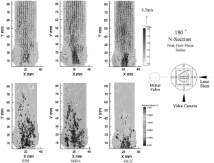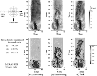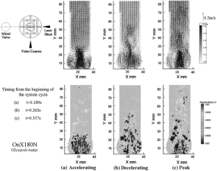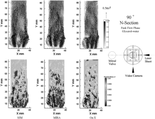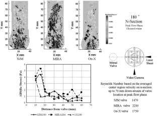 The current design of the bileaflet valve, the leaflets of which open outside first, differs significantly from the natural valve whose leaflets open center first. This difference generates a completely different flow field in the bileaflet valve compared to that in the natural heart valve. In a previous study, it was demonstrated that the valve design greatly affects the aortic flow field as well as the circulatory flow inside sinuses of Valsalva, using saline solution as a working fluid. A limited discussion on the turbulence flow field that could be generated by the valve was provided. In this continuation of that study, therefore, a dynamic PIV study was conducted to analyze the influence of the heart valve design on the aortic flow field, and particularly on the turbulent profile. This study also aimed to determine the influence of the viscosity of the testing fluid. Three bileaflet prostheses—the St. Jude Medical (SJM), the On-X, and the MIRA valves—were tested under pulsatile flow conditions. Flow through the central orifice of the SJM valve was slower than that through the newer designs. The newer designs tend to show strong flow through all orifices. The On-X valve generates simple jet-type flow while the MIRA valve with circumferentially curved leaflets generates a strong but three-dimensionally diffuse flow, resulting in a more complex flow field downstream of the aortic valve with higher turbulence. A 180° orientation that is more popular clinically seems to provide a less diffuse flow than a 90° orientation. The effect of increasing the viscosity was found to be an increase in the flow velocity through the central orifice and a more organized flow field for all of the valves tested.