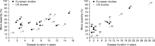 Verstappen SM, Bijlsma JW, Verkleij H, Buskens E, Blaauw AA, ter Borg EJ, Jacobs JW, Utrecht Rheumatoid Arthritis Cohort Study Group (2004) Overview of work disability in rheumatoid arthritis patients as observed in cross-sectional and longitudinal surveys. Arthritis Rheum 51:488–497