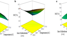 Islam Shishir, M.R., Taip, F., Aziz, N. et al. Optimization of spray drying parameters for pink guava powder using RSM. Food Sci Biotechnol 25, 461–468 (2016). https://doi.org/10.1007/s10068-016-0064-0