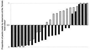 In this study we examined how social learning of feeding preferences by zebra finches was affected by the identity of different demonstrators. We presented adult zebra finches with two demonstrators, one male and one female, that exhibited different food choices, and we recorded their subsequent preference when given a choice between the two food types. Previously it was found that young zebra finches' patterns of social learning are affected by the sex of the individual demonstrating a feeding behaviour. This result could be explained by the lack of exposure these animals had to the opposite sex, or by their mating status. Therefore, we investigated the social learning preferences of adult mated zebra finches. We found the same pattern of directed social learning of a different type of feeding behaviour (food colour): female zebra finches preferred the colour of food eaten by male demonstrators, whereas male zebra finches showed little evidence of any preference for the colour of food eaten by female demonstrators. Furthermore, we found that female observers' preferences were biased by demonstrators' relative feeding activity: the female demonstrator was only ever preferred if it ate less than its male counterpart.