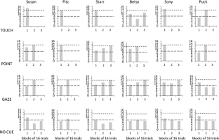 Barth J, Reaux JE, Povinelli DJ (2005) Chimpanzees’ (Pan troglodytes) use of gaze cues in object- choice tasks: Different methods yield different results. Anim Cogn 8:84–92