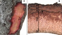 In contrast to these compounds, fisetin (Fis) and 2-benzyl-2,6,3′,4′-tetrahydroxycoumaran-3-one (BTC) showed a different radial distribution trend. The contents of fisetin and the benzylcoumaranone in the heartwood were almost constant and/or increased somewhat toward the pith (Fig. 6). It has been reported that some compounds would be formed in the heartwood by a non-enzymatic reaction during aging [27, 30, 31]. As reported for the reactions of fustin [19] and taxifolin [20, 21], (−)-fustin would undergo an oxidative reaction to form fisetin and a rearrangement reaction to form the benzylcoumaranone, respectively. Accordingly, the non-enzymatic reactions of (−)-fustin during aging were suggested as a potential pathway for the formation of fisetin and 2-benzyl-2,6,3′,4′-tetrahydroxycoumaran-3-one in heartwood, although further studies on these synthetic pathways are required. In addition to these reactions, an equilibrium epimerization at the C-2 position is also expected for 2,3-dihydroflavonols [20, 21]. In this study, reversible epimerization between (−)-fustin and (−)-epifustin was observed (data not shown) as well as the presence of (−)-epifustin at a constant rate of 5–7 % of (−)-fustin (Table 4; Fig. 6). It was thus suggested that (−)-epifustin contained in the heartwood extracts might be formed by the epimerzation of (−)-fustin.