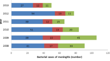 Thigpen MC, Whitney CG, Messonnier NE, Zell ER, Lynfield R, Hadler JL, Harrison LH, Farley MM, Reingold A, Bennett NM, Craig AS, Schaffner W, Thomas A, Lewis MM, Scallan E, Schuchat A; Emerging Infections Programs Network (2011) Bacterial meningitis in the United States, 1998–2007. N Engl J Med 364:2016–2025