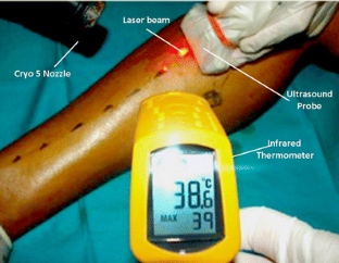 Hernández-Osma E, Mordon SR, Vokurka J, Trelles MA (2012) A comparative study of the efficacy of endovenous laser treatment of the incompetent great saphenous with external air cooling and without tumescent anesthesia. J Vasc Surg (in press)