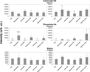 Soares LGP, Marques AMC, Barbosa AFS, Santos NR, Aciole JMS, Souza CMC, Pinheiro ALB, Silveira L (2014) Raman study of the repair of surgical bone defects grafted with biphasic synthetic microgranular HA + β-calcium triphosphate and irradiated or not with λ780 nm laser. Lasers Med Sci 29(5):1539–1550