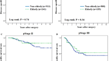 The overall survival rate after surgery was similar in both oldest and elderly patients, although limited lymph node dissections were performed more frequently in oldest old patients. There are several possible explanations for comparable surgical outcomes in the oldest old patients. Takeshita et al. [39] reported that surgical outcomes in elderly patients were comparable to those in nonelderly patients. They suggested that the biological behavior of the tumor (e.g., tumor growth and metastatic potential) may differ between elderly and young patients. Additionally, many of the elderly patients underwent at least limited lymph node dissection according to the Japanese guidelines [regional lymph node and Nos. 7, 8a, and 9 (+11p)]. Takeshita et al. concluded that R0 resection with at least limited lymph node dissection (again, according to the Japanese guideline) should be considered as the treatment of first choice for elderly patients with gastric cancer, especially those between the ages of 80 and 84 years. The prognostic significance of radical surgical gastrectomy is still uncertain in oldest old patients (aged ≥85 years) because relatively few cases are available for investigation. A future large study is required to confirm these findings.