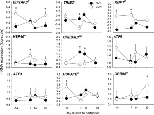 Gessner DK, Schlegel G, Ringseis R, Schwarz FJ, Eder K (2014) Up-regulation of endoplasmic reticulum stress induced genes of the unfolded protein response in the liver of periparturient dairy cows. BMC Vet Res 10:46