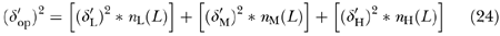 where δ′L, δ′M, and δ′H are the sensitivities per decibel for L