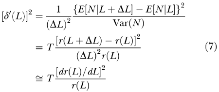 First consider optimum processing of time-invariant Poisson processes (i.e., optimally weighted Poisson counting variables) with rate-level functions given by Eq. (17) as plotted in Figure 1. Since δ′ for L