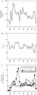 We thank Dr. Kotaro Takayama, Ehime University, for teaching us the PAM technique. Thanks are also due to the members of LAFWEDY, Ehime University, for their advice, discussions and encouragement throughout the study. We thank Dr. M.J. Morris for correction of our English and constructive comments on the manuscript. This study was partly supported by the Center of Excellence (COE) Program at the “Global Center of Excellence for Interdisciplinary Studies on Environmental Chemistry” by the Espec Foundation for Global Environment Research and Technology and by the Environment Research and Technology Development Fund (D-0905) of the Ministry of Environment, Japan.