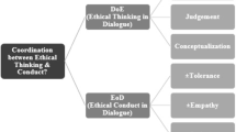 To conclude, our study emphasises the importance of analysing student dialogues in more detail to understand how student dialogue can improve students’ ability to form and substantiate their opinions on moral issues. Although learning through dialogue is a central element in many instructional formats for citizenship education, empirical studies that elaborate on the content and structural features of such dialogue are scarce (Schuitema et al. 2008). Our study indicates that the quality of the content of students’ dialogue is important for students’ ability to substantiate their opinion on moral issues with value-laden argumentation. An instructional design for citizenship education in which dialogue is a central element should, therefore, aim to enhance the quality of the content of students’ dialogues. Attention should be given, in particular, to the validation and the invalidation of ideas and views from the perspective of moral values. In addition, this study shows that the results with regard to the effect of co-construction on students’ ability to substantiate their opinions are not univocal. Greater insight into the role of co-construction in students’ dialogue, compared with other characteristics of students’ dialogue and taking into account context variables, such as group composition, is clearly needed.