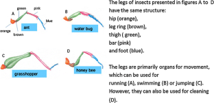 In the original picture, the different parts of the legs are not labeled by color names, but by the corresponding colors. Within the original text, colors are used instead of color names as reference to the picture.