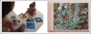 Children are exposed to symbolic media, such as printed or electronic pictures. The purpose of this research was to compare children’s learning of a concept (camouflage) with two different picture-book formats. Forty-four-year-olds were assigned to two conditions: learning with a printed book or with an e-book. Instruction and book contents were paired. In a quasi-experimental pre-test post-test design, we analyzed children’s learning, transfer, and justifications. Results showed that correct responses increased significantly throughout the test phases with no differences between conditions. Also, children transferred the concept to both kinds of images. Concerning justifications, children provided more camouflage justifications after the reading than before. However, in the post-test, children in the book condition performed better than children in the e-book condition; also, they gave more camouflage justifications with printed than with electronic images. Given these results, we consider that the debate is not only about using new technologies in educational environments, but also about how to use them to diversify the learning experiences that traditional media already provide.
