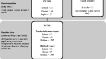 PATHS is underpinned by the Affective-Behavioural-Cognitive-Developmental model of development, which emphasises the developmental integration of affect, emotion language, behaviour and cognitive understanding to promote social-emotional competence (Greenberg and Kusche 1993). Each class receives curriculum packs containing lessons and send-home activities on topics such as identifying and labeling feelings, controlling impulses, reducing stress and understanding other people’s perspectives. Associated physical resources and artifacts (e.g. posters, feelings dictionaries) are also provided. In the current study, class teachers were also given an implementation guidance manual developed by the research team that emphasised the PATHS programme theory and the importance of effective implementation (available on request from the research team).