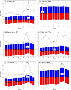 The study is part of ODU’s Climate Change and Sea Level Rise Initiative and the Institute for Coastal Adaptation and Resilience (ICAR; https://oduadaptationandresilience.org/). The Center for Coastal Physical Oceanography (CCPO) provided computational support. The hourly tide gauges sea level data are available from http://opendap.co-ops.nos.noaa.gov/dods/. The Florida Current transport data are available from http://www.aoml.noaa.gov/phod/floridacurrent/. The SST and wind data are available from https://www.esrl.noaa.gov/psd/data/gridded/data.ncep.reanalysis.html.