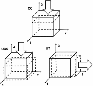 Recalling (5), the elasticity tensor \(\mathbb C _{ ABCD}\) relates the increments in second Piola–Kirchhoff stress (\(\delta S_{ AB}\)) and Cauchy-Green deformation tensors (\(\delta C_{ CD}\)) as