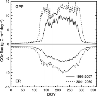 Piao S, Ciais P, Friedlingstein P, Peylin P, Reichstein M, Luyssaert S, Margolis H, Fang J, Barr A, Chen A, Grelle A, Hollinger DY, Laurila T, Lindroth A, Richardson AD, Vesala T (2008) Net carbon dioxide losses of northern ecosystems in response to autumn warming. Nature 451:49–52