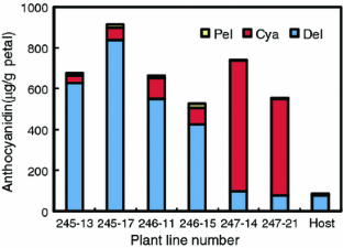 Katsumoto Y, Mizutani M, Fukui Y, Brugliera F, Holton T, Karan M, Nakamura N, Yonekura-Sakakibara K, Togami J, Pigeaire A, Tao G-Q, Nehra N, Lu C-Y, Dyson B, Tsuda S, Ashikari T, Kusumi T, Mason J, Tanaka Y (2007) Engineering of the rose flavonoid biosynthetic pathway successfully generated blue-hued flowers accumulating delphinidin. Plant Cell Physiol 48:1589–1600