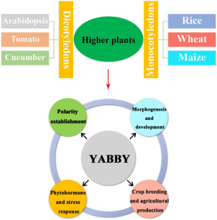 The YABBY family is a class of plant-specific transcription factors comprising a typical N-terminal C2C2-type zinc finger domain and a C-terminal helix-loop-helix YABBY domain. YABBY transcription factors play important roles in multiple biological processes, including polarity establishment in plant leaves, the formation and development of reproductive organs, the response to plant hormone signals, resistance to stress, crop breeding and agricultural production. The aim of this review is to summarize our current understanding of the roles, functions and value of the YABBY family in plants, with particular emphasis on new insights into the molecular and physiological mechanisms involved in the YABBY-mediated modulation of polarity establishment, morphogenesis and development, and phytohormone and stress responses in plants. In addition, we propose that this transcription factor family presents great value and potential for research, application and development in crop breeding and agricultural production in the future.