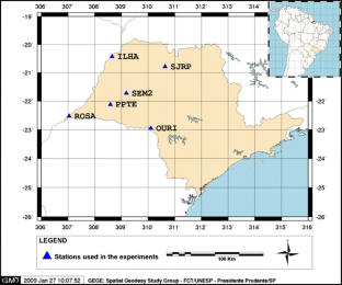 The authors would like to thank FAPESP for financial support provided to the first author (post-doctoral scholarship, 2008/06499-9 process) and to the Thematic Project (2006/04008-2 process). Thanks to Dr. Paulo de Oliveira Camargo and PhD student Claudinei Rodrigues de Aguiar of UNESP for providing the Mod-Ion Model. Thanks to Dr. Luiz Fernando Sapucci, from CPTEC/INPE for providing PNT data.
