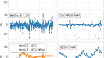 The quantity Brdc_UTCGNSS – GNSST is included in the navigation message and is obtained by the different GNSSs in different ways based on different algorithms and on different UTC realizations. GPS is broadcasting the difference of GPST with respect to UTC(USNO) (United States Space Force 2013), Galileo is instead predicting the offset between GST and UTC, using five European UTC (k) time scales as intermediate references (GSA 2016a), GLONASS is broadcasting a prediction of GLONASST versus UTC(SU) (GLONASS Coordination Scientific Information Center 1998), and BeiDou is broadcasting a prediction of UTC based on UTC (NTSC) (Chinese Satellite Navigation Office 2018). Here, USNO is the US Naval Observatory, SU stands for the Russian time scale realized by the VNIIFTRI Institute, and NTSC is the Chinese National Timing Service Center. Conversely, Galileo uses as an intermediate reference the German, French, Swedish, Spanish, and Italian realizations of UTC (k). The UTC references chosen by the four GNSSs are different, but as they are all based on real-time local realizations of UTC, aiming to be good approximations of UTC, their difference is usually small (Panfilo and Arias 2019). In addition, each GNSS has a different prediction and update policy for the broadcast value of Brdc_UTCGNSS – GNSST. Nevertheless, as we will see in the next sections, such contributions have, in general, a limited impact on the effectiveness of the method.