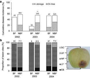 The authors gratefully acknowledge Dr. Naoyuki Matsumoto for critically reading the manuscript and the staff of the Iwate Plant Protection Office for assessing disease incidence and sampling fruit scars in commercial orchards.