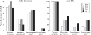 We thank Dr. Peter Maxin, Margarita Beer, Susan Brauer and Stefanie Kutz (Esteburg-Obstbauzentrum Jork) for technical assistance. Long-term financial support by the German Ministry of Food and Agriculture (Bundesprogramm Ökologischer Landbau, grant numbers 06OE323 and 2810OE004) is gratefully acknowledged and has been essential for conducting the work described here.