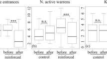 This study was carried out in the framework of the LIFE 2003/NAT/E/0050 and LIFE 2002/NAT/E/8617 projects. The artificial warrens were built by people of CBD-Habitat foundation. We are indebted to R. Higuero, A. Arredondo, L. Bolonio, M. Mata and J.F. Leiva for their help with fieldwork. The Environmental Spanish Ministry and the Royal Spanish Federation of Hunting also participated in the projects, as well as the Organismo Autónomo de Espacios Naturales of the regional government of Castilla-La Mancha and the Dirección General de Medio Ambiente of the regional government of Extremadura. We would like to thank to Víctor Díez, Nacho Mosqueda, Antonio Aranda, Ramón Pintado and Javier Caldera, to the estate owners as well as those people from the CBD-Habitat foundation who lent their assistance, especially J. Oria, S. Agudín, F. Silvestre, J. Inogés and J. Muñoz-Igualada. The authors would also like to express sincere thanks to Mar Celada, who translated the manuscript, to R. Perea and C. Herruzo for their useful comments on earlier drafts and to two anonymous referees and to W. Lutz for their helpful suggestions.
