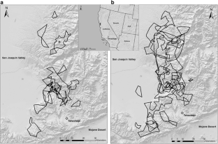 We thank Cellular Tracking Technologies that manufactured the GPS-GSM transmitters used in this project. Elliot Chasin (CDFW), Carie Battistone (CDFW), Amy Fesnock (US BLM), J. Andrew DeWoody (Purdue), and Leah Dunn provided key insights and support throughout this project. Chris Niemela, Scott Thomas, Cheryl Thomas, Mike Kuehn, and Robert Chapman assisted with the field effort. We thank E.J. Remson and Zachary Principe of The Nature Conservancy for access to local ranch lands under their management. This work was supported by the California Department of Fish and Wildlife (CDFW agreements P1182024 and P148006) and the Bureau of Land Management (US BLM contract L11PX02237) as well as the authors’ institutions. TEK designed the study, PHB trapped and telemetered eagles, SAP and MB analyzed the data, SAP and TEK led the writing, and all authors contributed to revising and improving the manuscript. Any use of trade, product, or firm names is for descriptive purposes only and does not imply endorsement by the U.S. Government.
