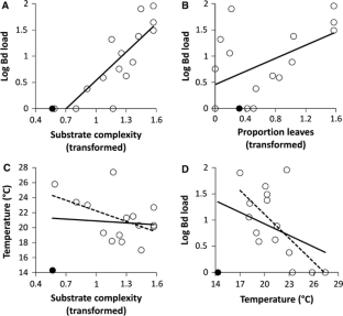Richards-Zawacki CL (2010) Thermoregulatory behaviour affects prevalence of chytrid fungal infection in a wild population of Panamanian golden frogs. Proceedings of the Royal Society of London. Series B: Biological Sciences 277:519–528