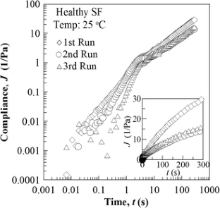 Oates, K. M. N., W. E. Krause, R. L. Jones, and R. H. Colby. Rheopexy of synovial fluid and protein aggregation. J. R. Soc. Interface 3(6):167–174, 2006.