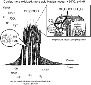 Russell MJ, Daia DE, Hall AJ (1998) The emergence of life from FeS bubbles at alkaline hot springs in an acid ocean. In: Wiegel J, Adams MWW (eds), Thermophiles: The keys to molecular evolution and the origin of life. Taylor & Francis, Washington, pp 77–126
