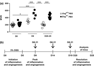 Jerkic M, Peter M, Ardelean D, Fine M, Konerding MA, Letarte M (2010) Dextran sulfate sodium leads to chronic colitis and pathological angiogenesis in Endoglin heterozygous mice. Inflamm Bowel Dis 16(11):1859–1870. doi:10.1002/ibd.21288